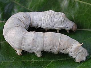 Com a disponibilidade de alimento assegurada, a lagarta cresce muito e necessita de trocar o seu exoesqueleto quitinoso, a sua pele, para poder continuar a crescer. Esta troca é designada por muda. Na fase larvar ocorrem 4 mudas de pele, nas quais a lagarta não se alimenta. O espaço de tempo entre cada muda de pele é denominado por idade ou instar. Desde a eclosão até à formação do casulo a lagarta passa assim por cinco idades.