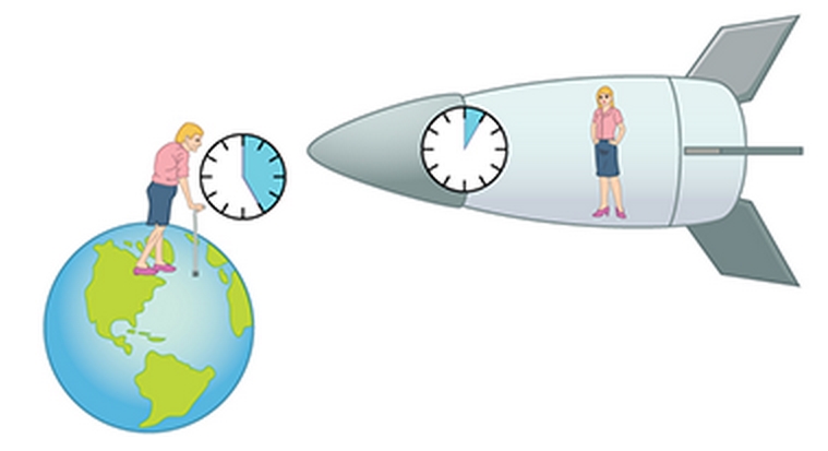 Esta propriedade do tempo foi muito popularizada através do paradoxo dos gémeos, exemplo sugerido pelo próprio Einstein: se um dos gémeos fosse enviado numa nave espacial a uma velocidade próxima da velocidade da luz, quando regressasse à Terra encontraria o seu irmão muito mais velho do que ele. Seria como se o tempo não passasse mais lentamente para quem viaja a velocidades muito grandes.