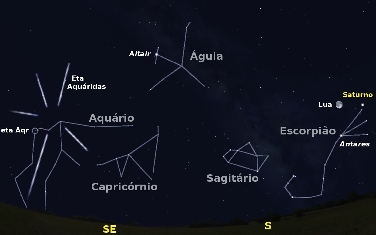 Parte deste mês será marcado pela chuva de meteoros das Eta Aquáridas, a qual tem o seu pico de atividade na noite de dia 5 para 6.