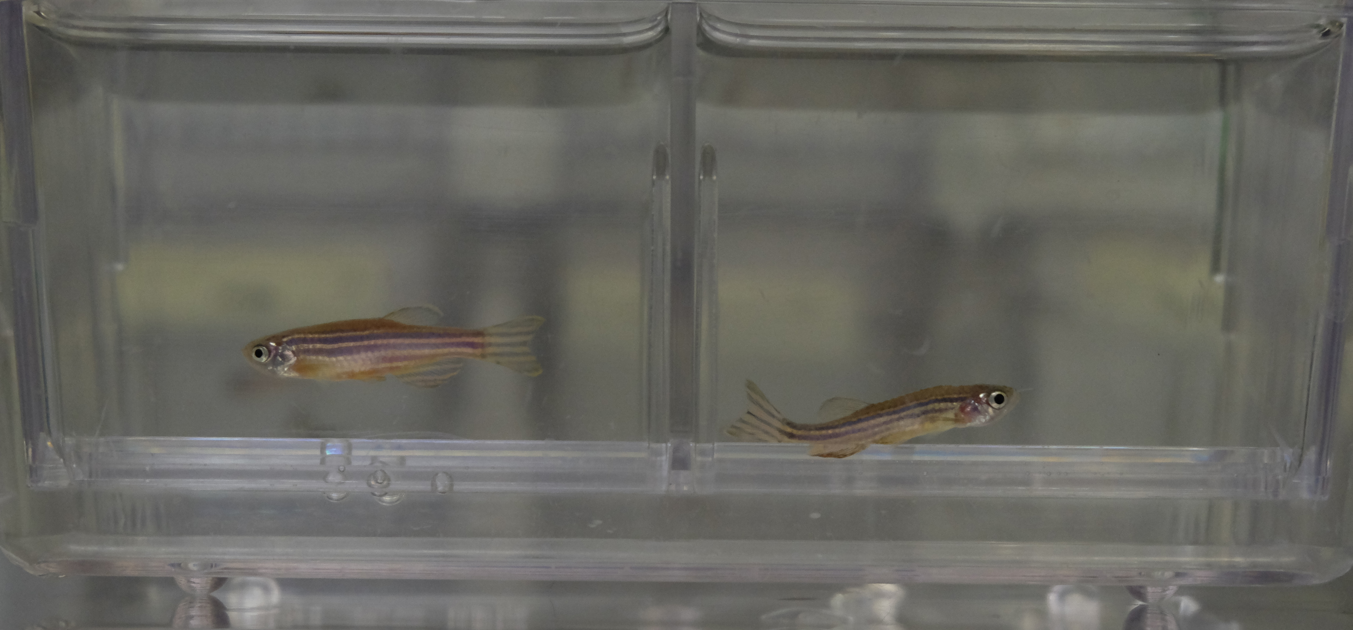Figura 1 - Peixes-zebra ao longo da vida (à esquerda, peixe-zebra adulto maturo com cerca de um ano; à direita, peixe-zebra idoso com cerca de 3 anos). Créditos: IGC